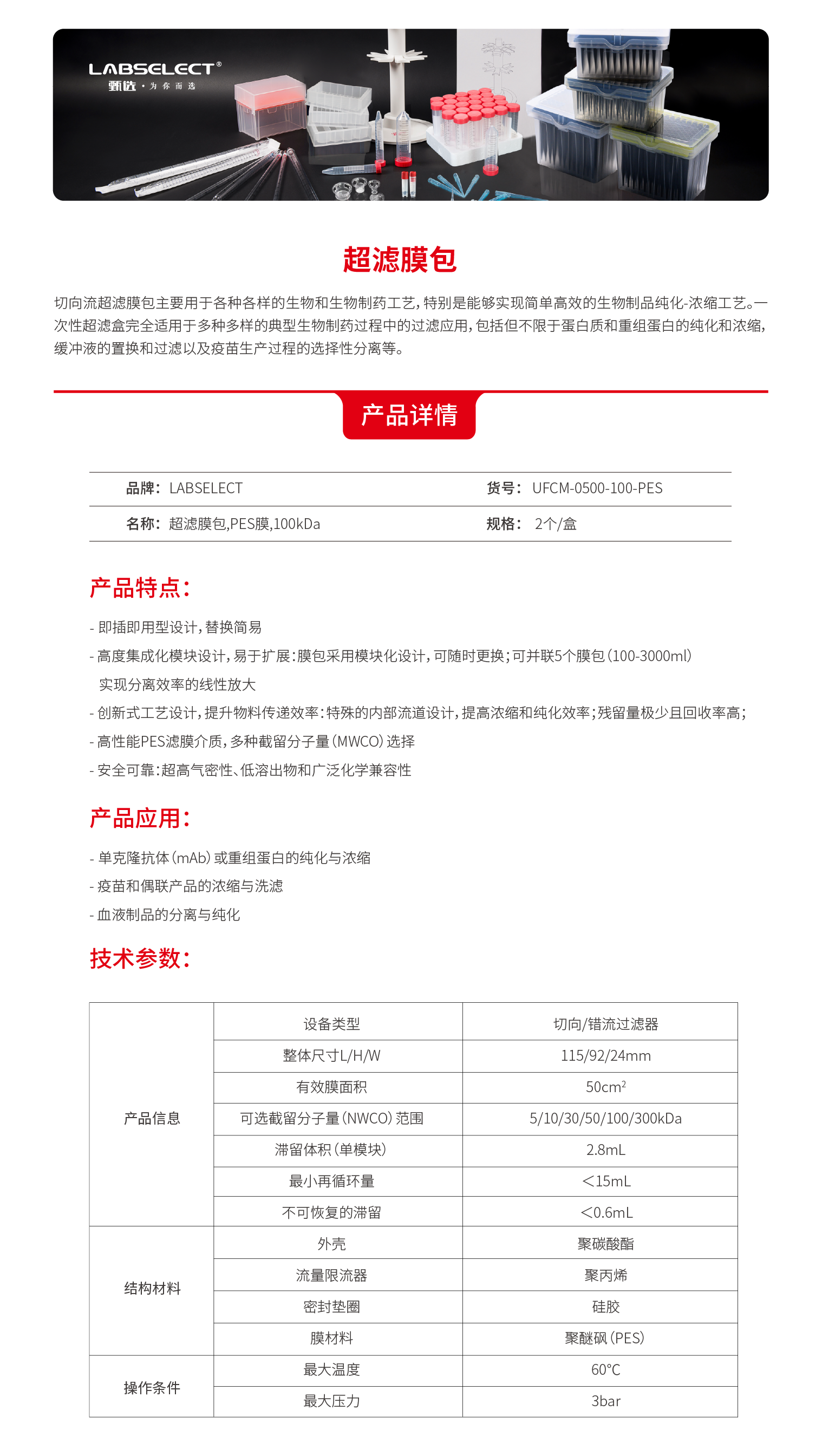 UFCM-0500-100-PES 超滤膜包,PES膜,100kDa