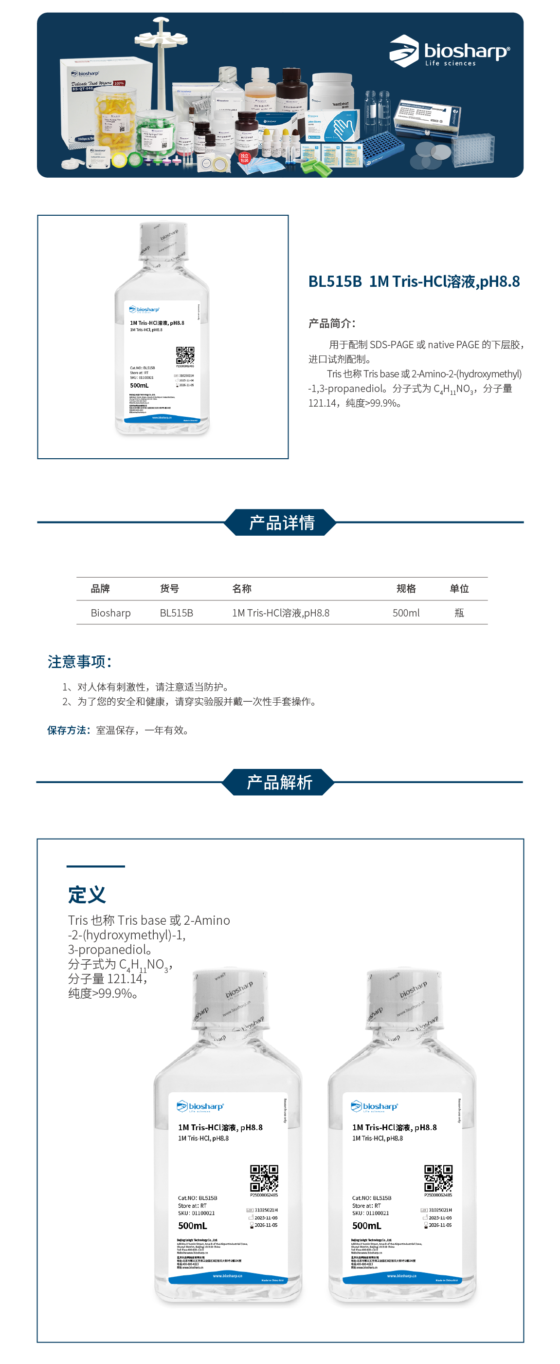 BL515B 1MTris-HCl溶液pH8.8