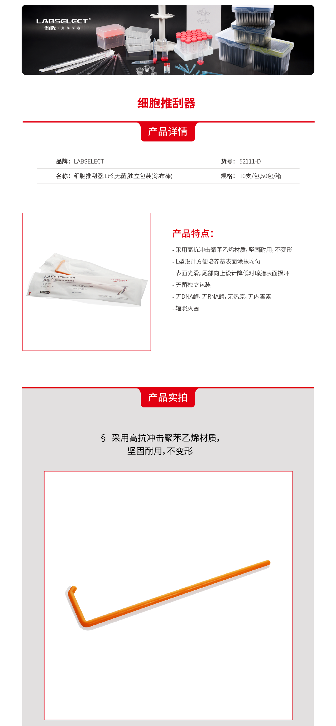 52111-D 细胞推刮器,L形,无菌,独立包装(涂布棒)