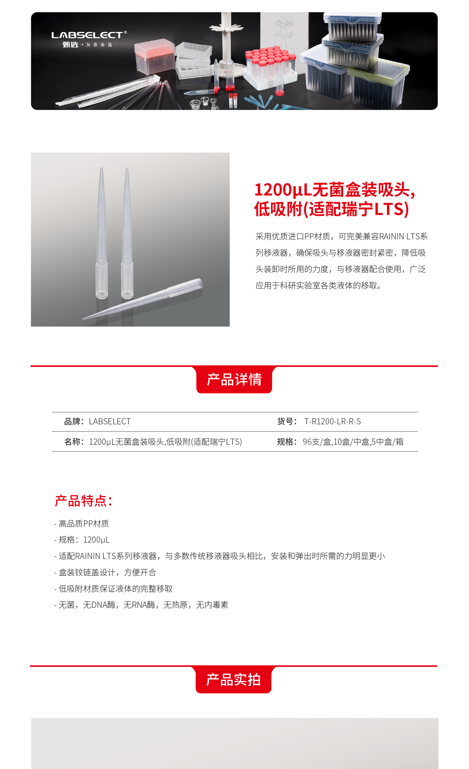 T-R1200-R-S 1200μL无菌盒装吸头(适配瑞宁LTS)