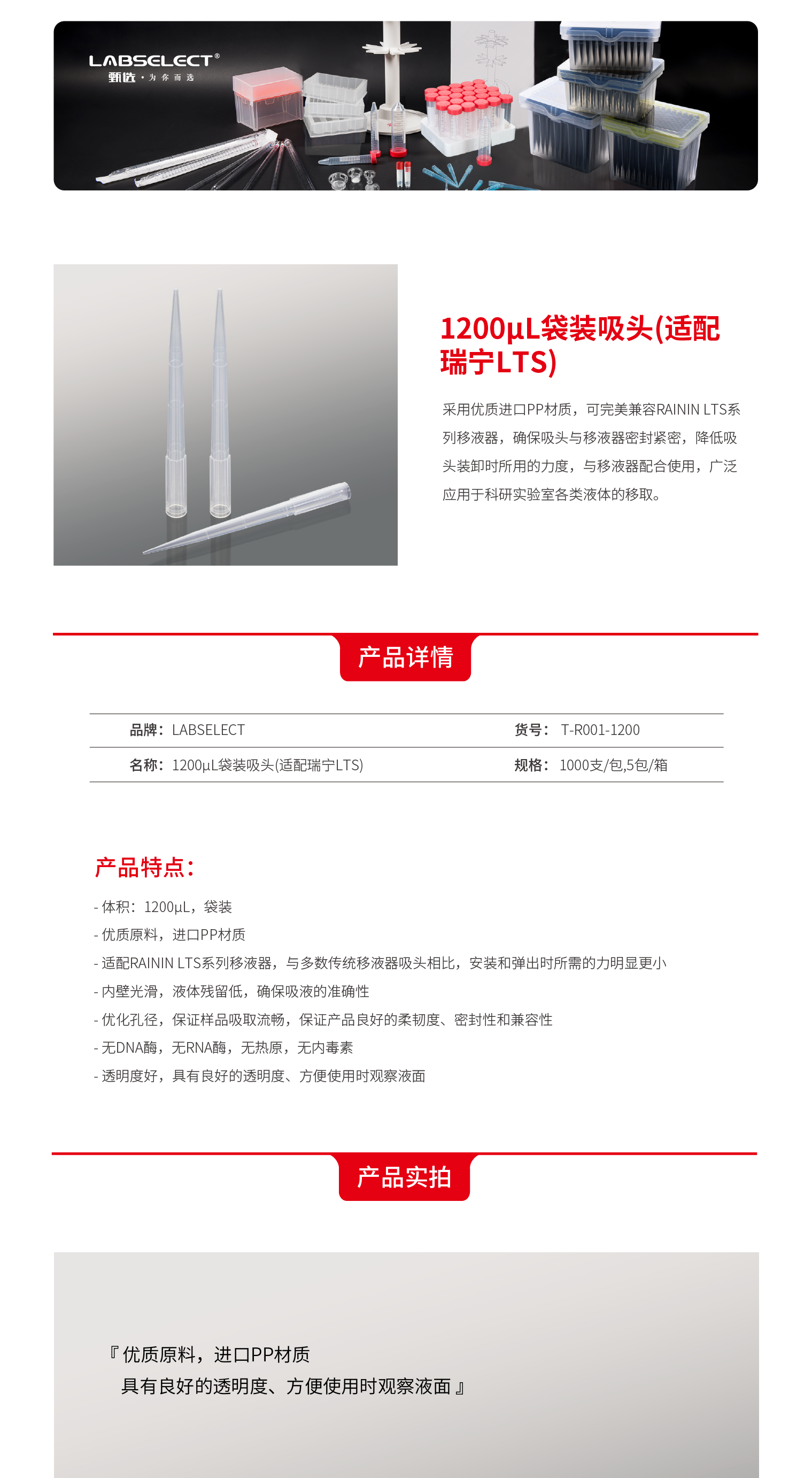 T-R001-1200 1200μL袋装吸头(适配瑞宁LTS)