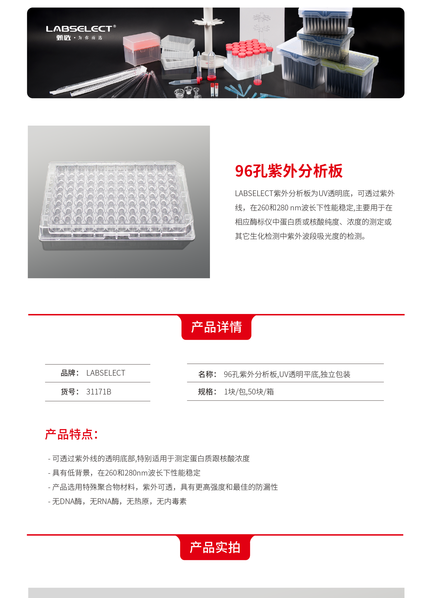 31171B 96孔紫外分析板,UV透明平底,独立包装