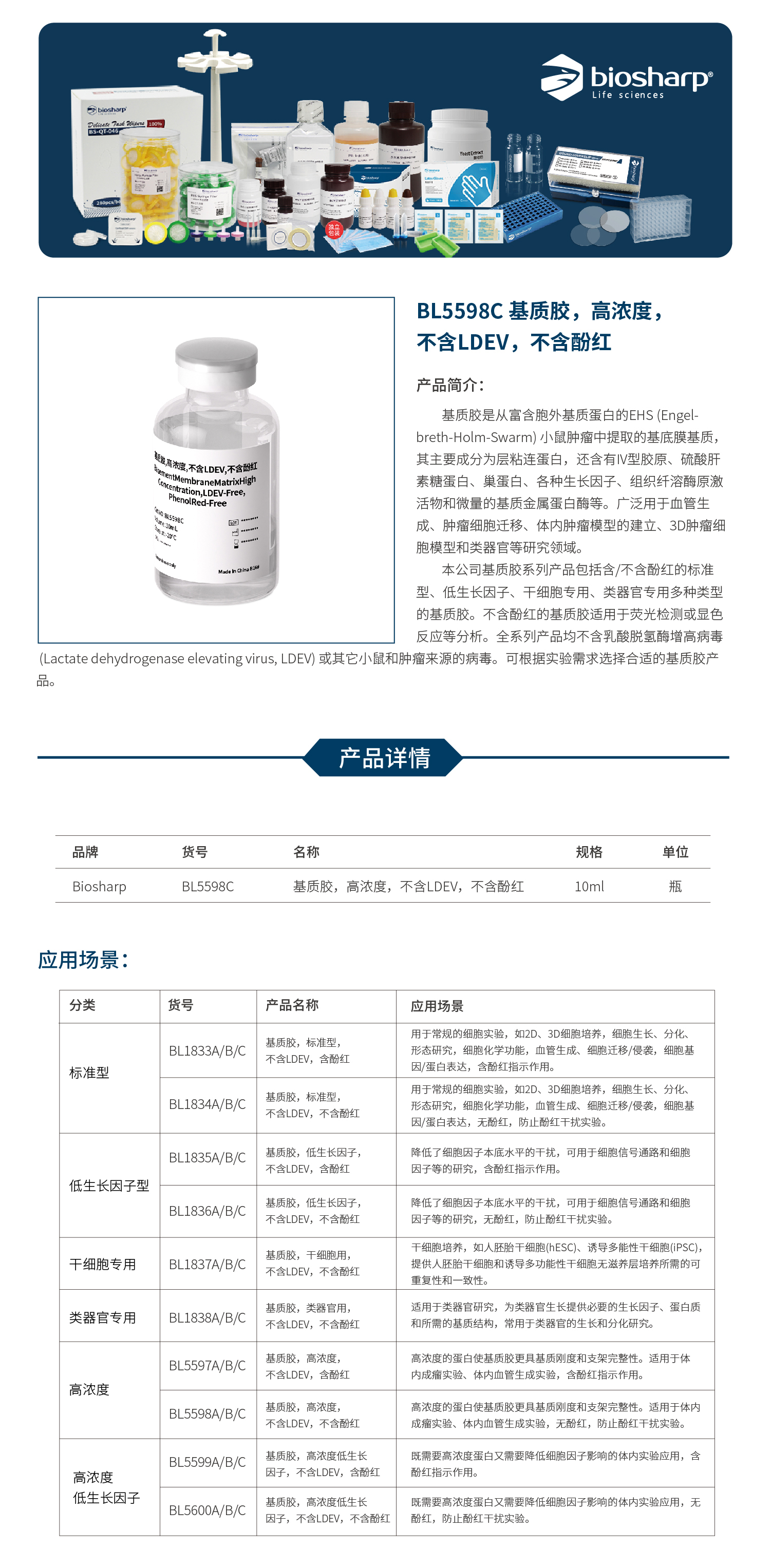 BL5598C 基质胶,高浓度,不含LDEV,不含酚红