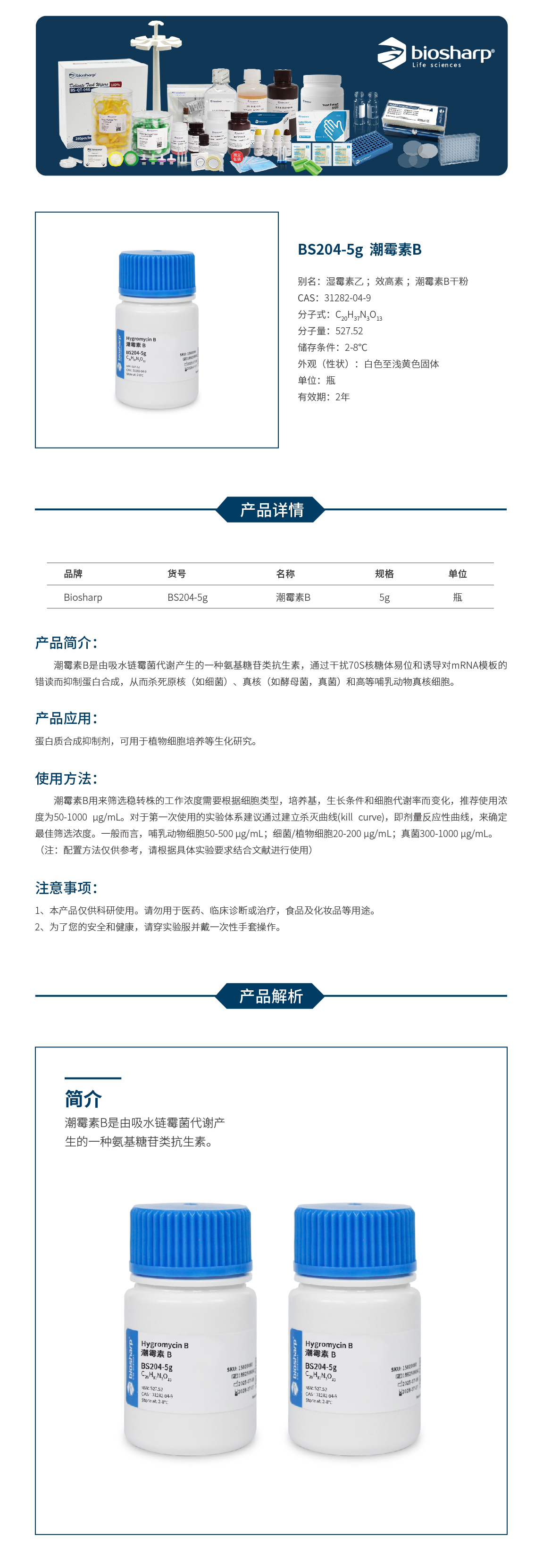 BS204-5g 潮霉素B/Hygromycin B