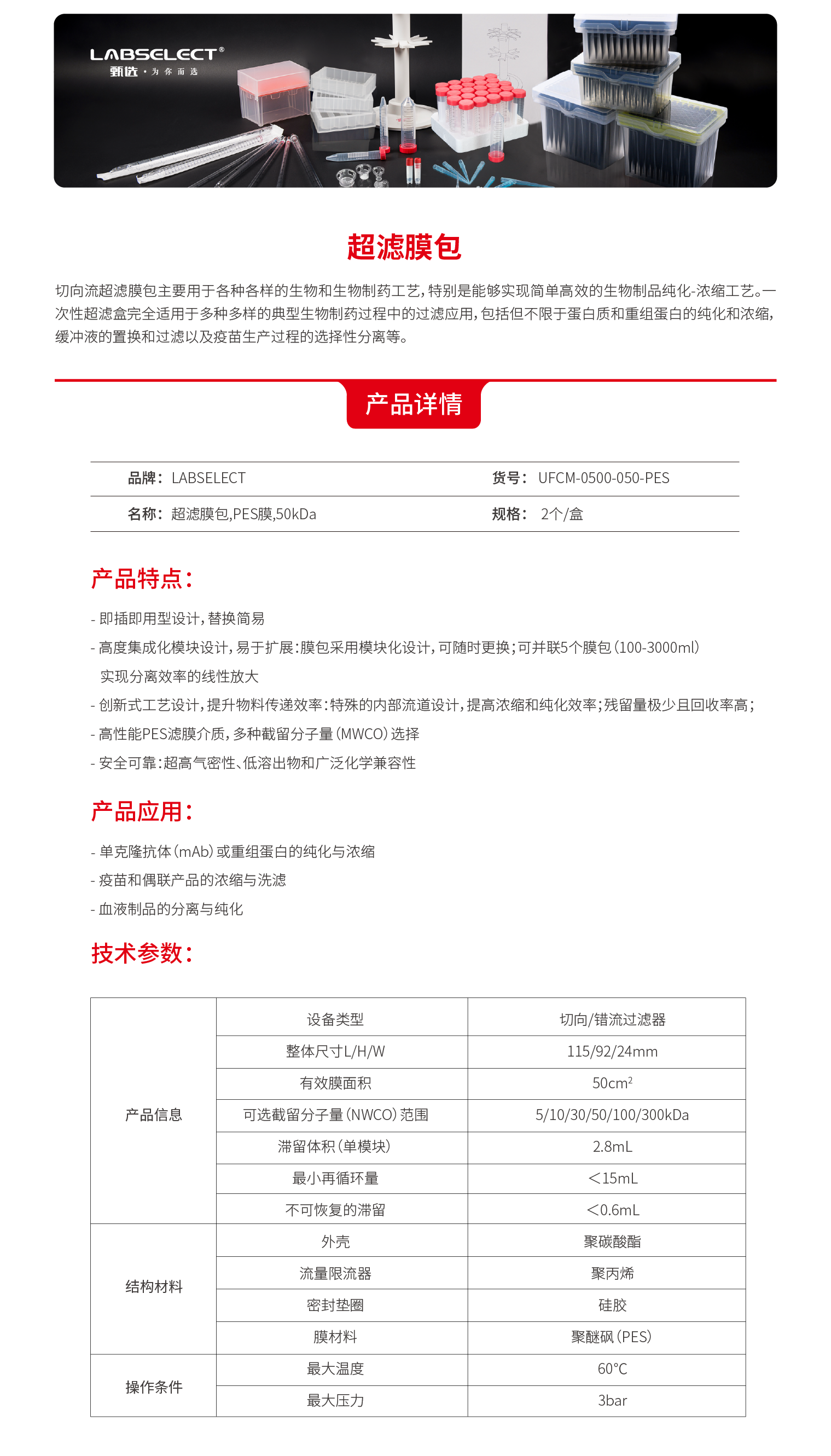 UFCM-0500-050-PES 超滤膜包,PES膜,50kDa