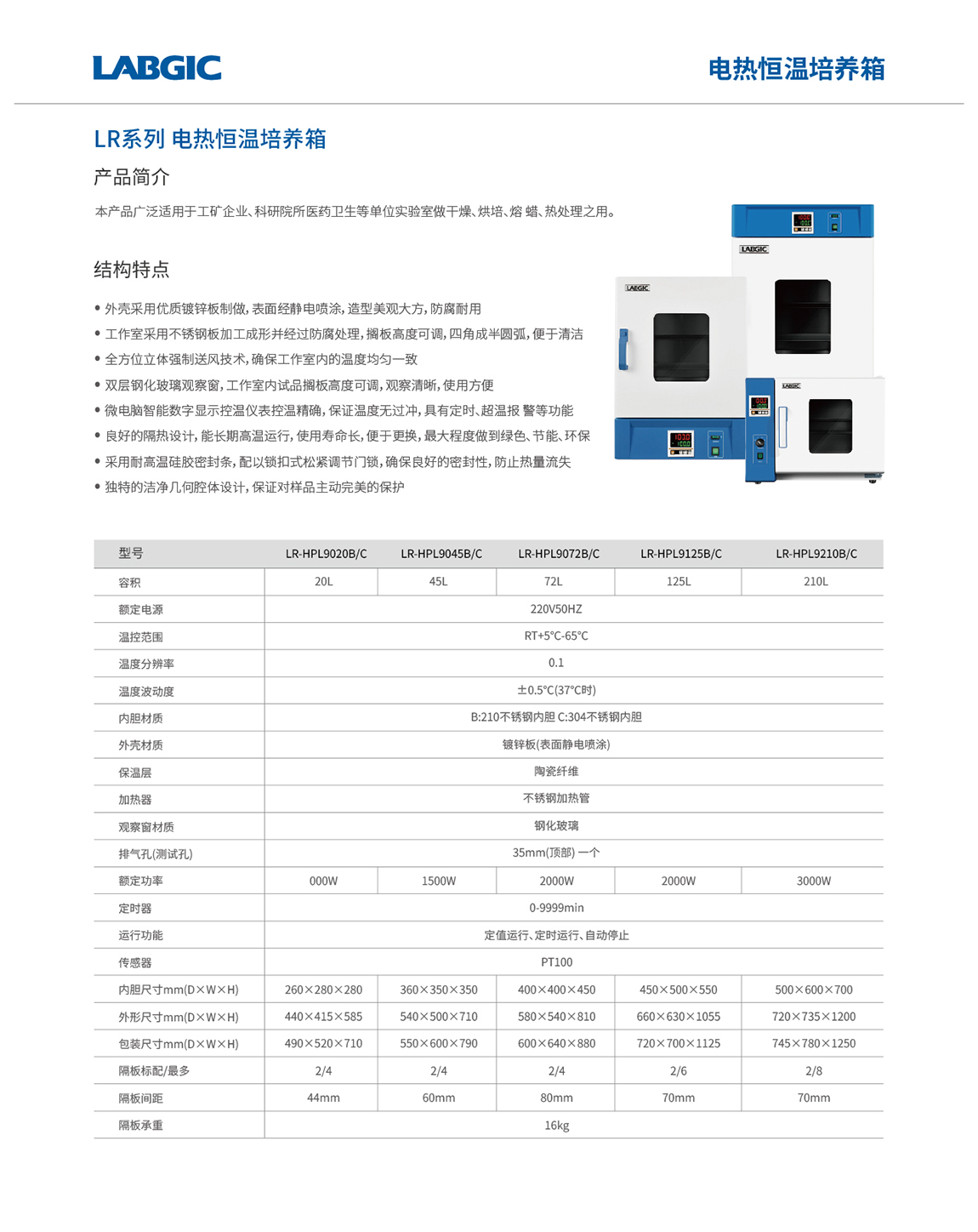 - 双层钢化玻璃观察窗,工作室内试品搁板高度可调,观察清晰,使用方便;