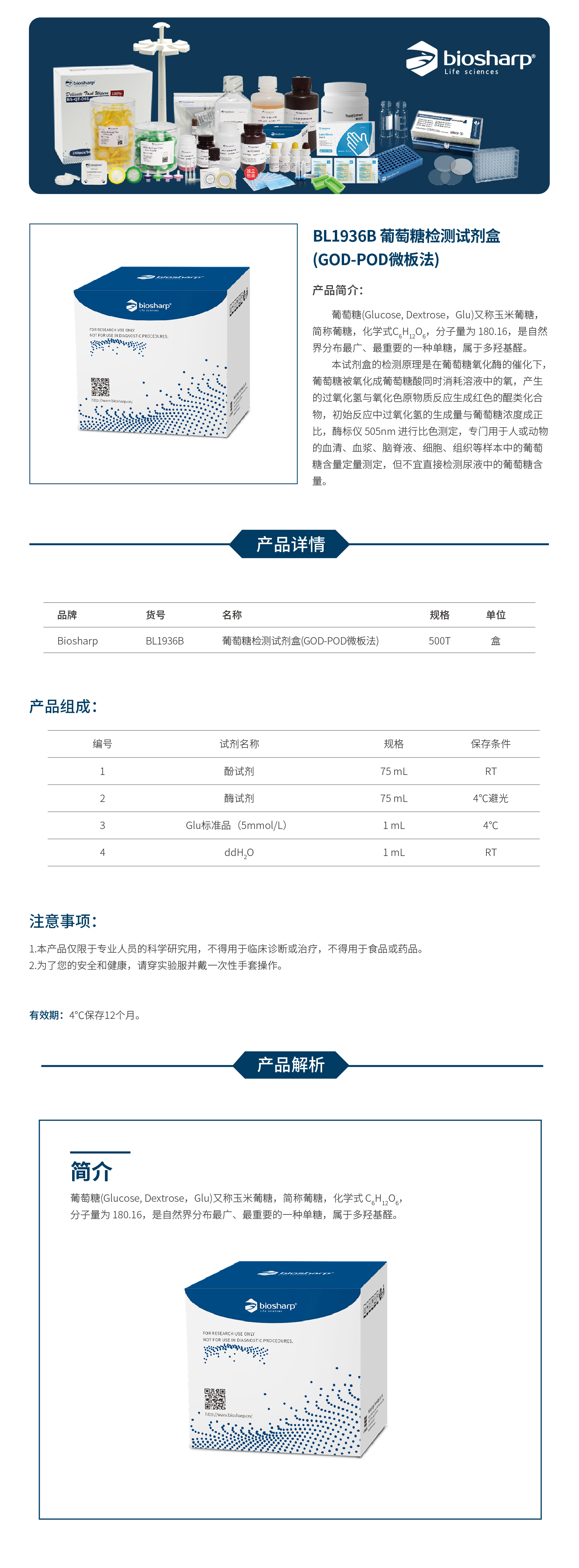 BL1936B 葡萄糖检测试剂盒(GOD-POD微板法)