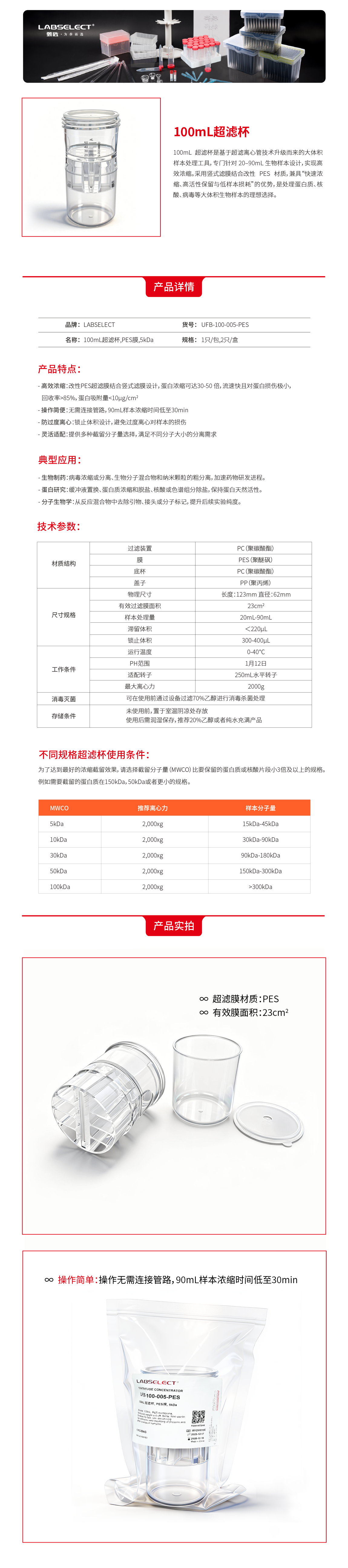 UFB-100-005-PES 100mL超滤杯,PES膜,5kDa