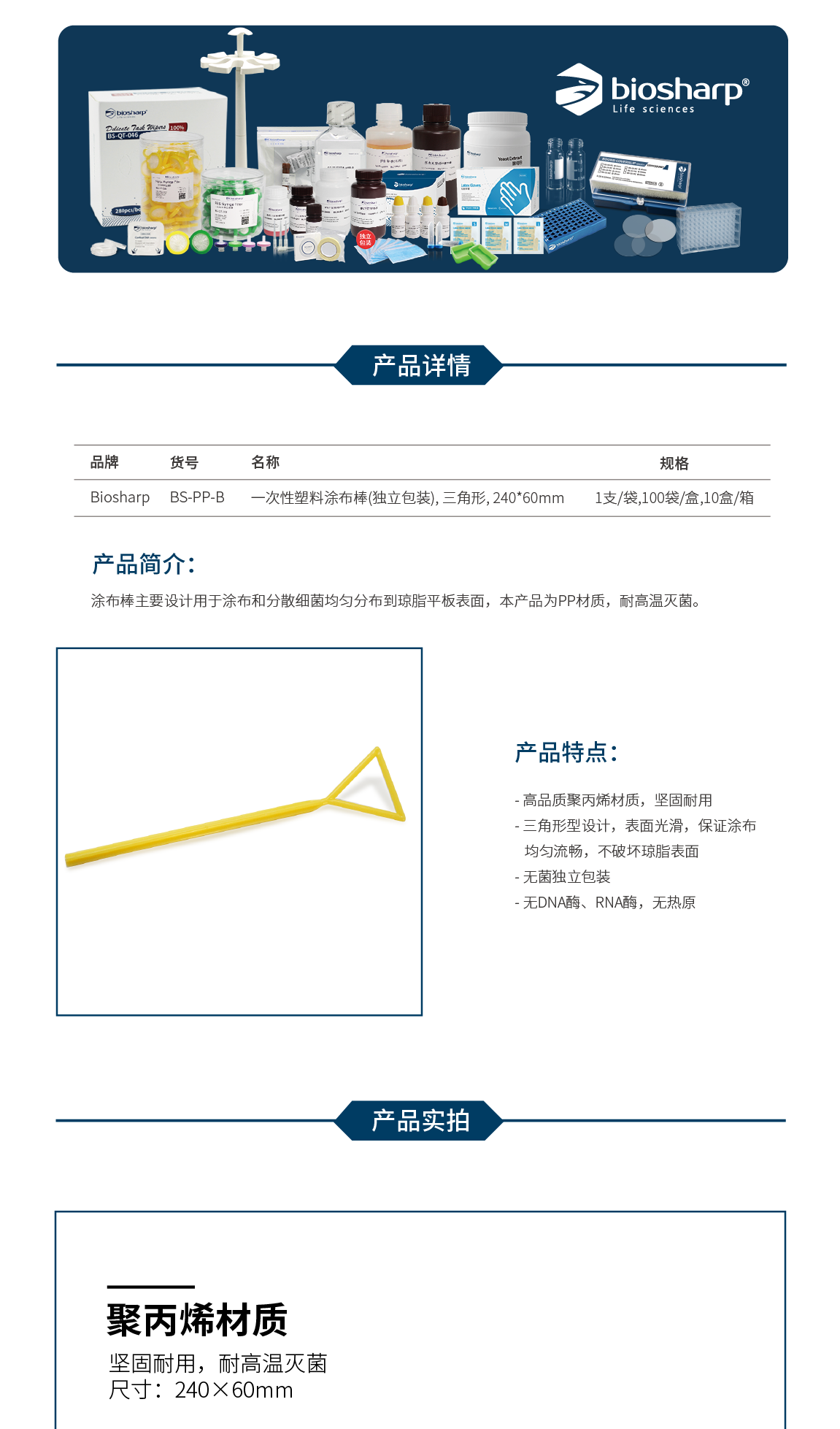 BS-PP-B 一次性塑料涂布棒(独立包装), 三角形, 240*60mm