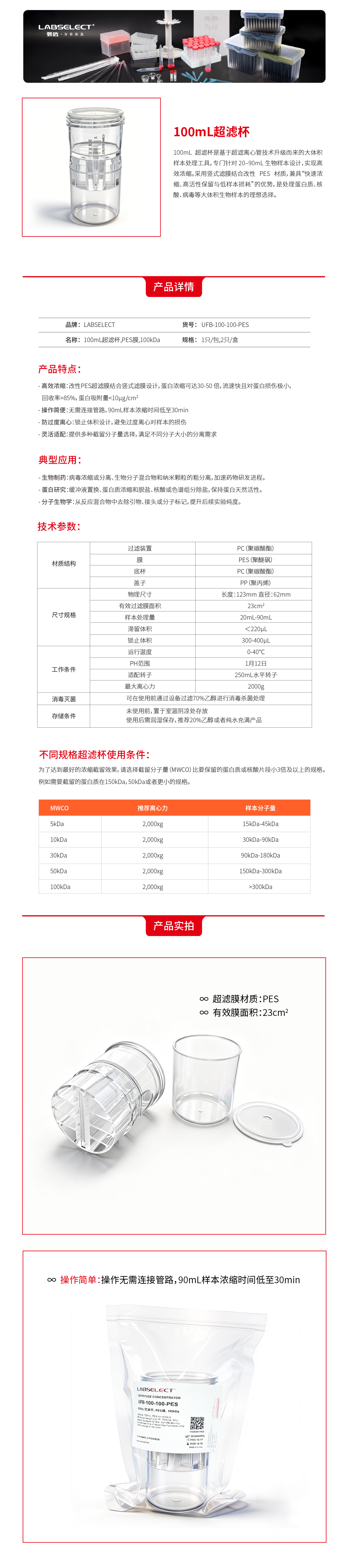 UFB-100-100-PES 100mL超滤杯,PES膜,100kDa