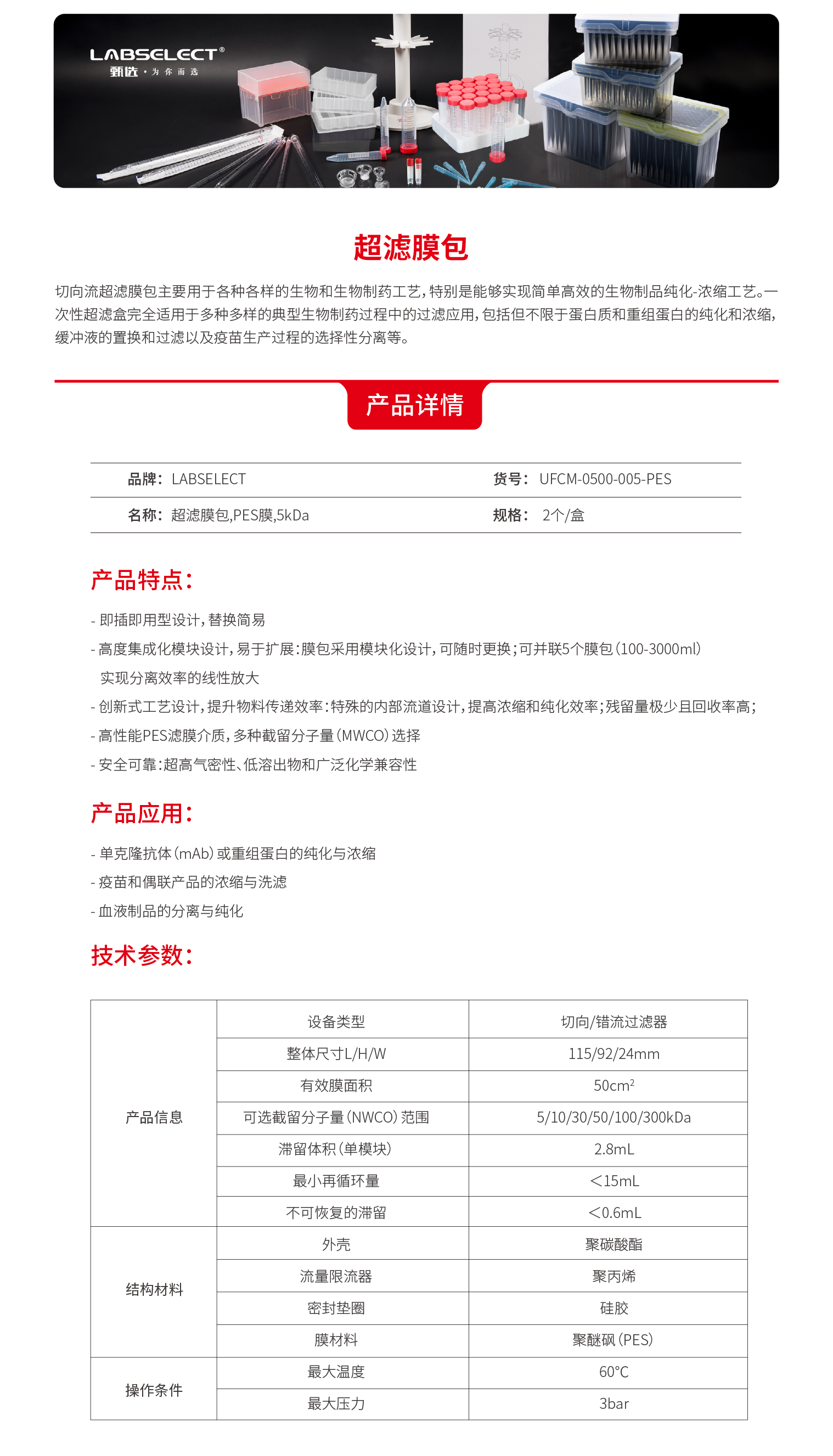 UFCM-0500-005-PES 超滤膜包,PES膜,5kDa