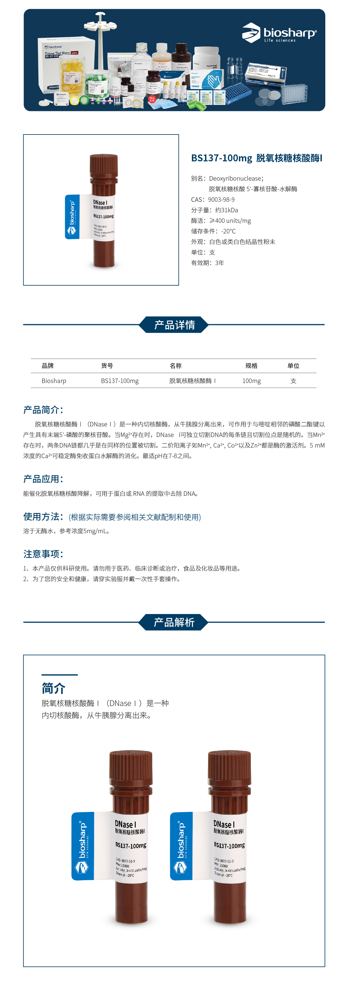 BS137-100mg 脱氧核糖核酸酶I DNaseI