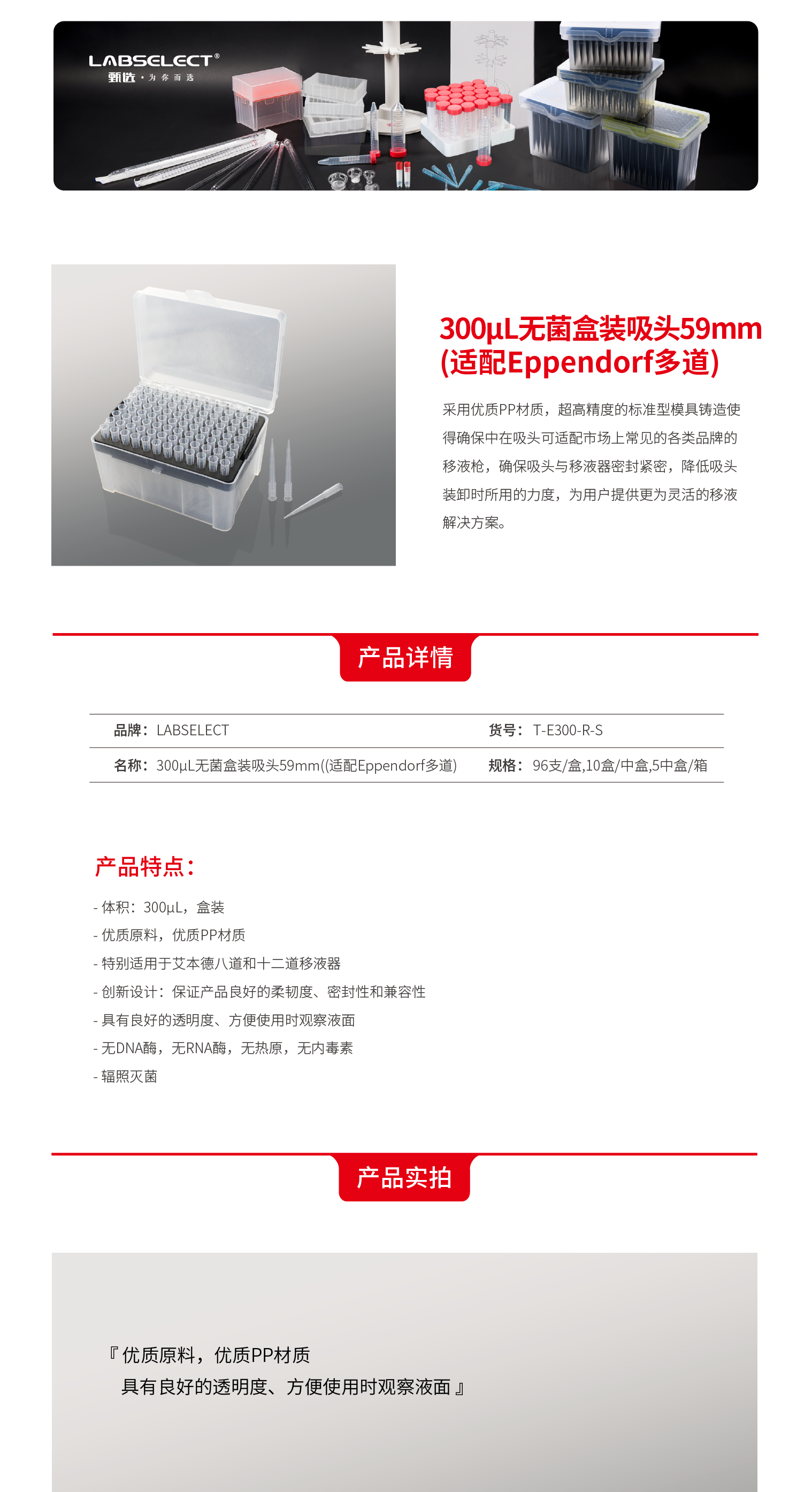 T-E300-R-S 300μL无菌盒装吸头59mm((适配Eppendorf多道)