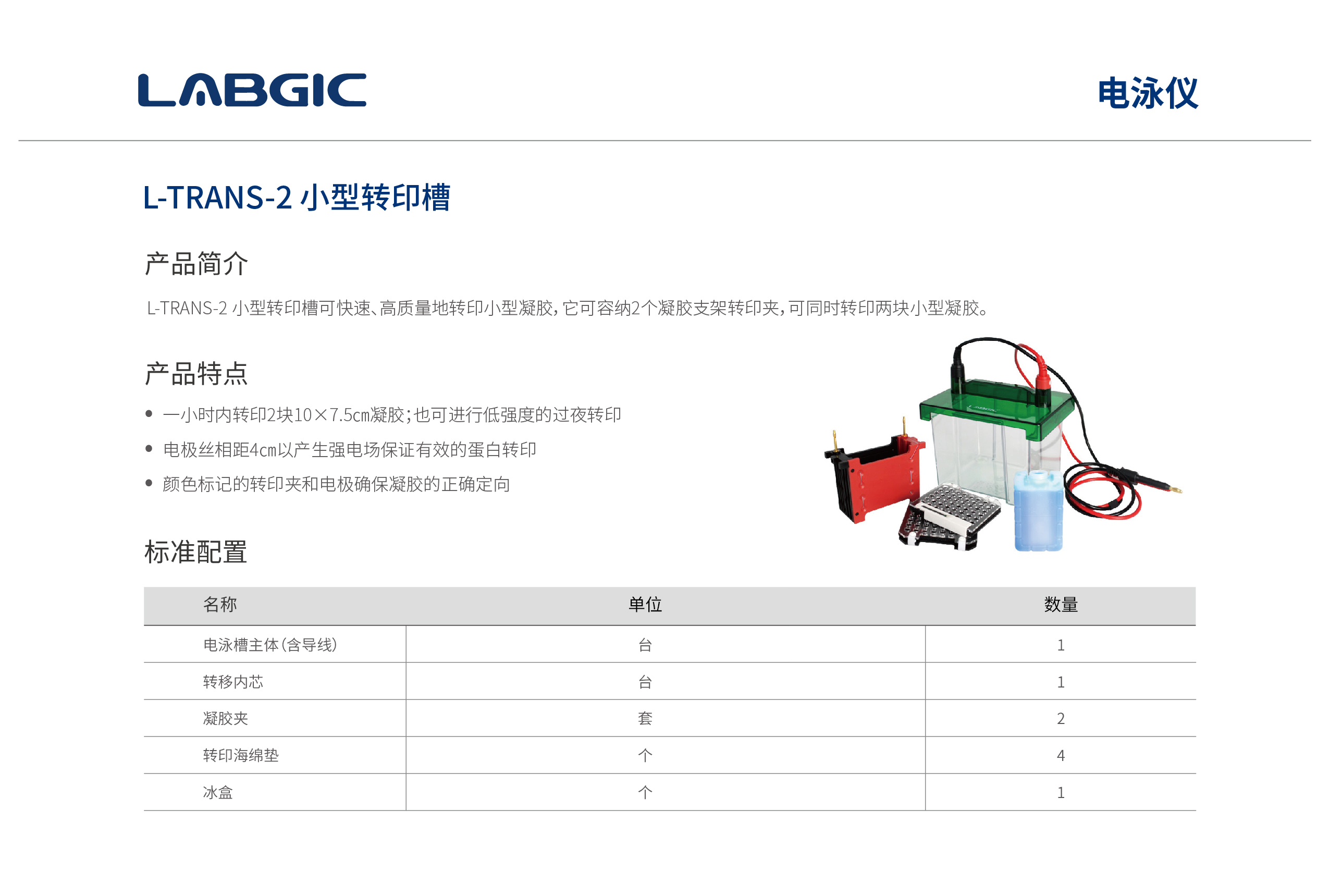 L-TRAS-2小型转印槽 槽可快速、高质量地转印小型凝胶,它可容纳2个凝胶支架转印夹,可同时转印两块小型凝胶。
