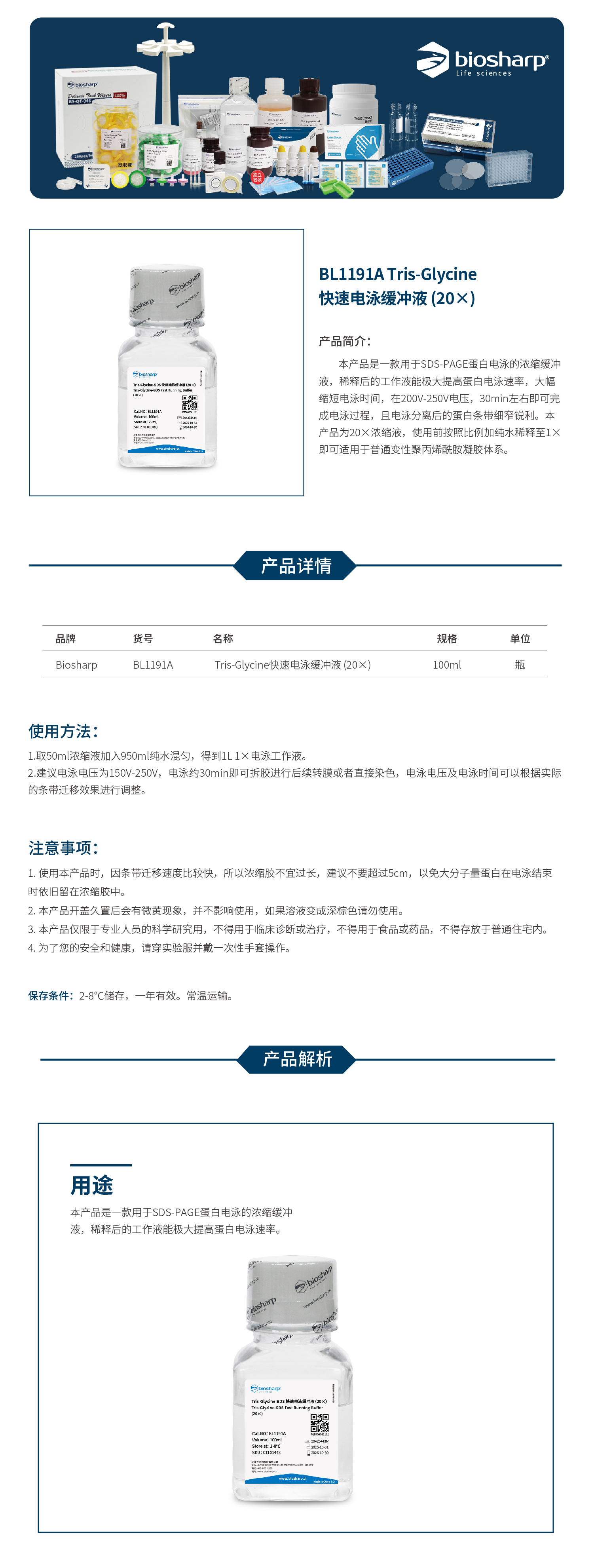 BL1191A Tris-Glycine-SDS快速电泳缓冲液 (20×)