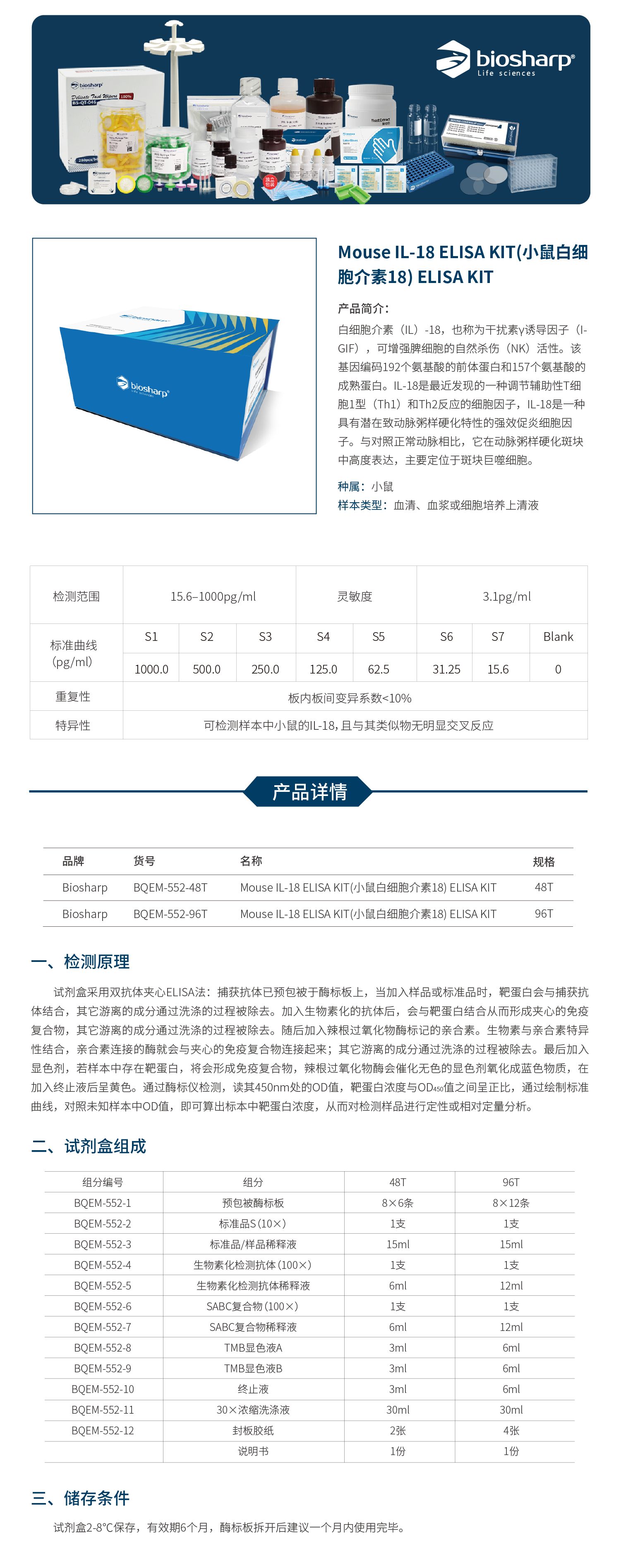 BQEM-552-48T Mouse IL-18 (小鼠白细胞介素18) ELISA KIT