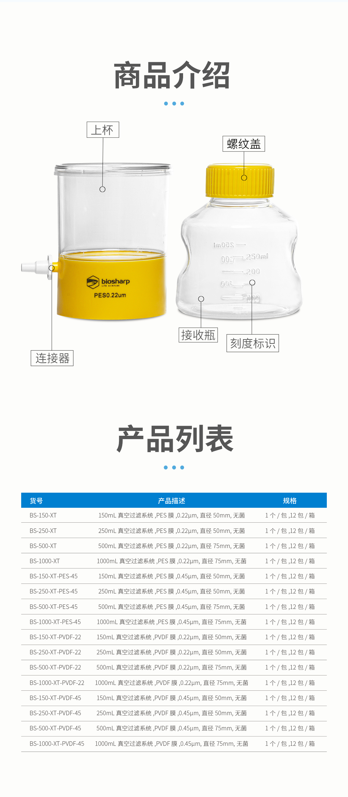 BS-500-XT-PVDF-45 500ml真空过滤系统,PVDF膜,0.45μm,直径75mm,无菌