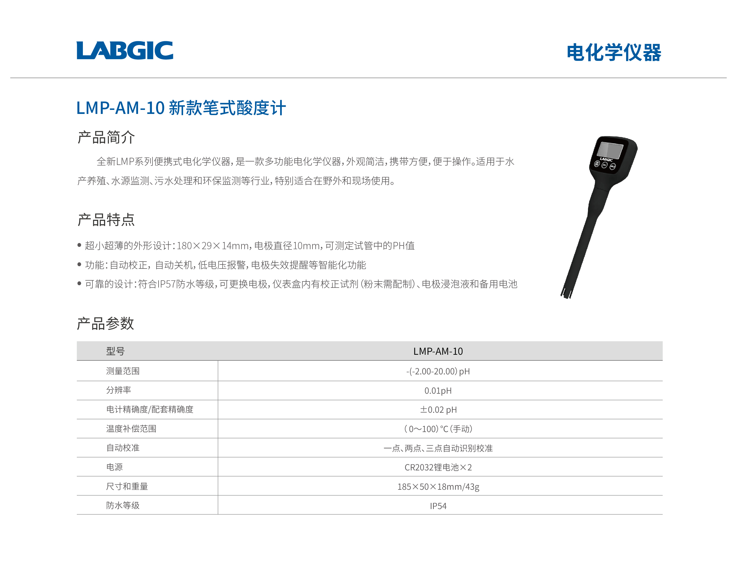 全新LMP系列便携式电化学仪器,是一款多功能电化学仪器,外观简洁,携带方便,便于操作。适用于水产养殖、水源监测、污水处理和环保监测等行业,特别适合在野外和现场使用。