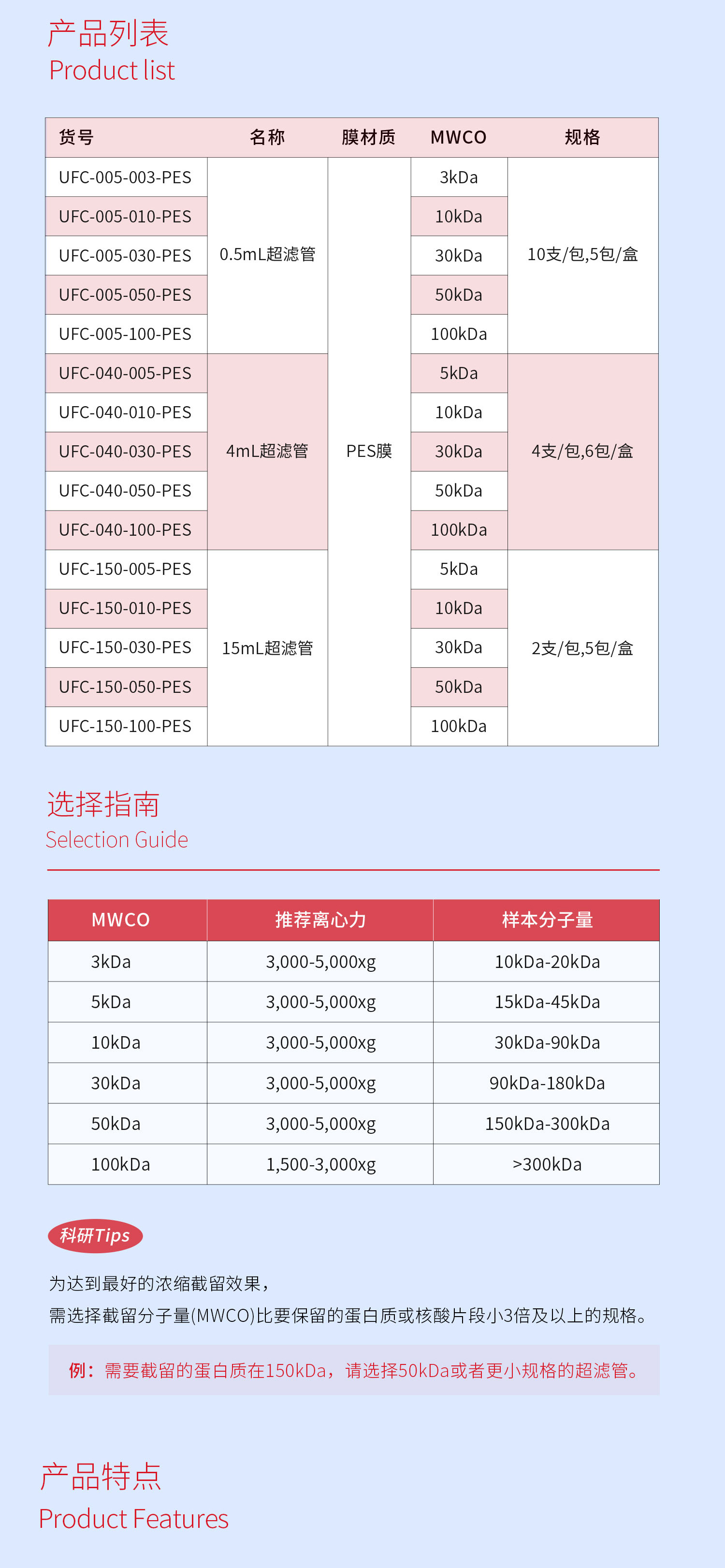 UFC-005-030-PES 0.5mL超滤管,PES膜,30kDa