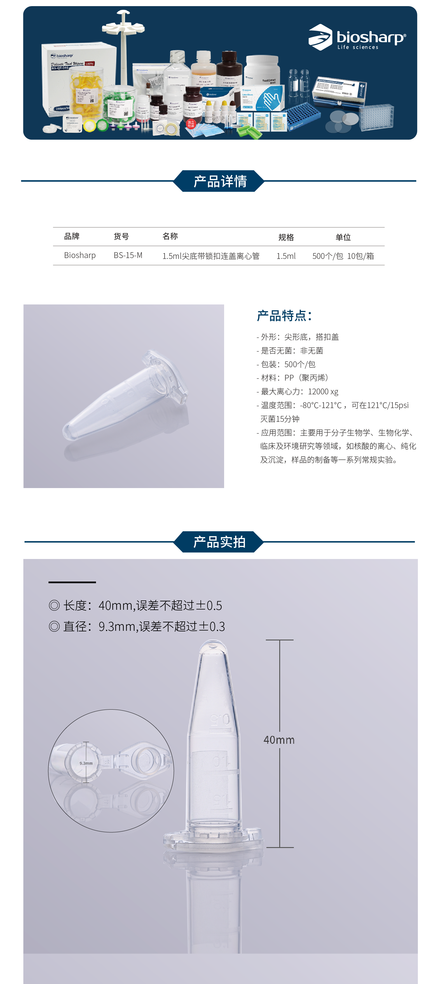 BS-15-M 1.5ml尖底带锁扣连盖离心管