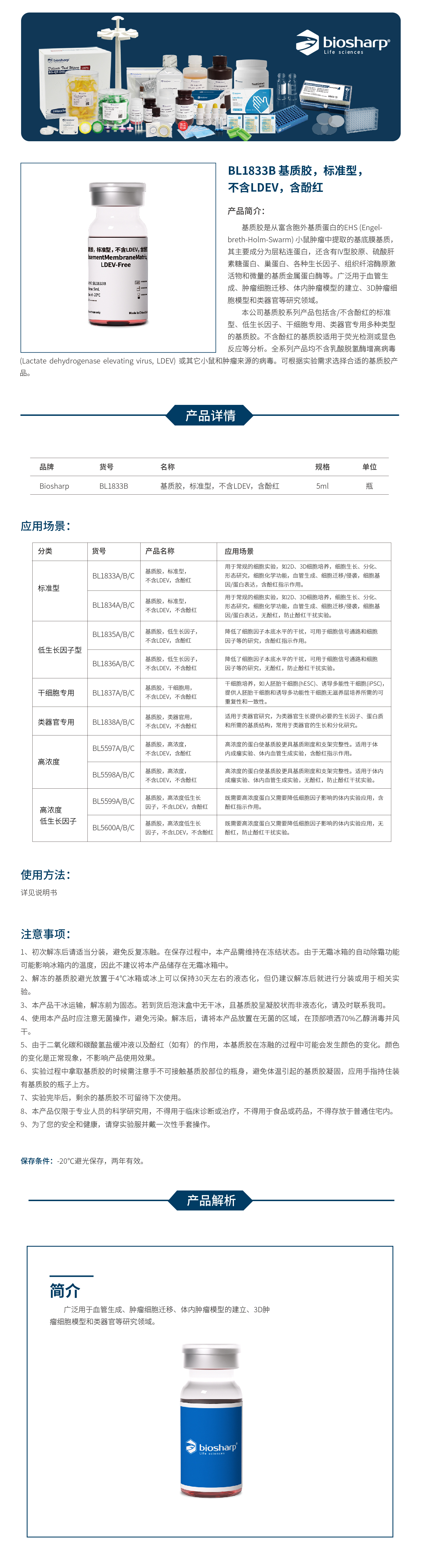 BL1833B 基质胶,标准型,不含LDEV,含酚红