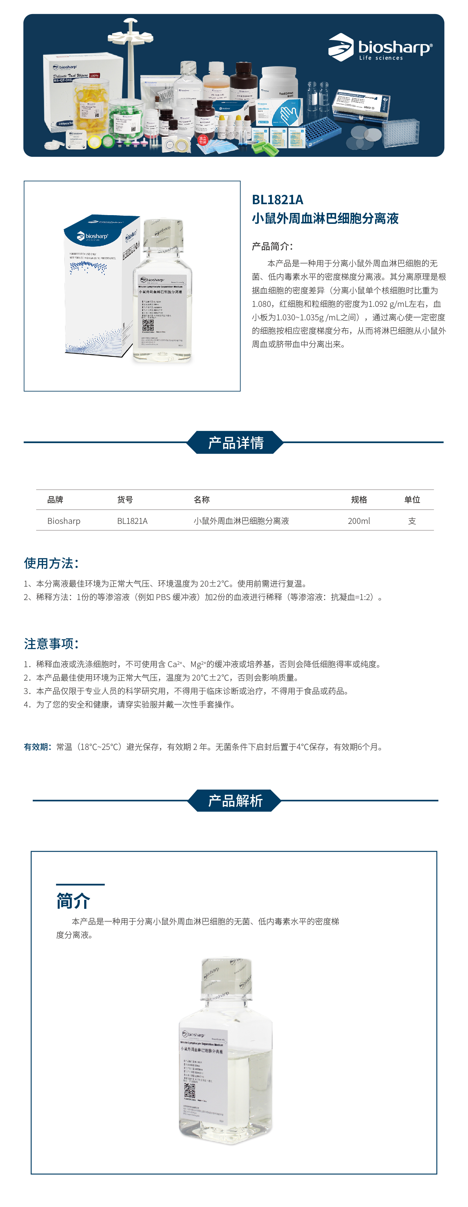 BL1821A 小鼠外周血淋巴细胞分离液